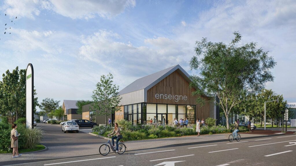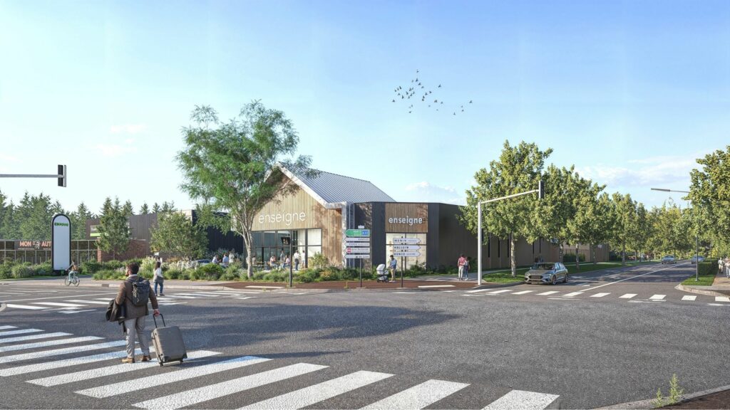 Création d’un pôle commercial accolé à une station de recharge rapide.